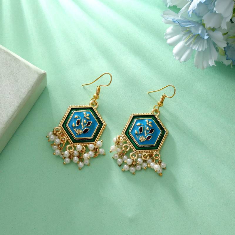 | Product Description | Earring Length: 5.40 Cm X Width: 2.10 Cm | Metal: Alloy With Good Quality Golod Plated | Color: Firozi | Stone: Beads | Gross Weight: 9.00 Grams | Package Content: 1 Pair Of Earrings | Back Finding: Fish Hook X Earring Style: Drop |