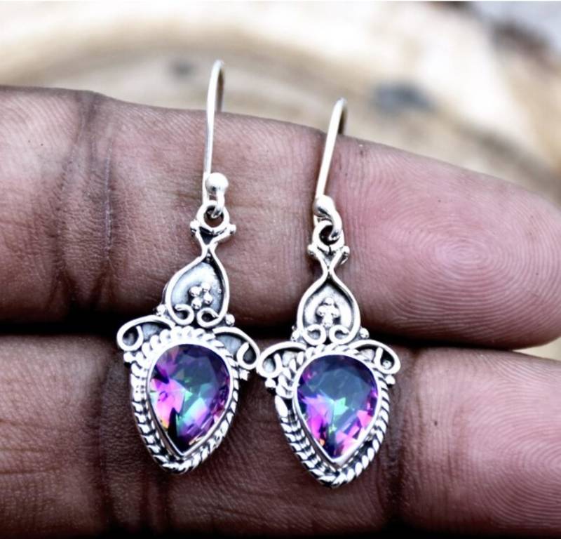 | Product Description | Features: Gemstone: Natural Mystic Topaz ? Creativity, Energy & Positive Transformation Shape: Pear / Water Drop Cut Metal: 925 Sterling Silver (Nickel Free, Hypoallergenic) Style: Hook Earrings Handmade Artisan Craftsmanship Elegant, Boho Inspired, And Versatile Design Lightweight And Comfortable For Daily Wear Perfect Gift For Her Gift Ready Packaging Included |