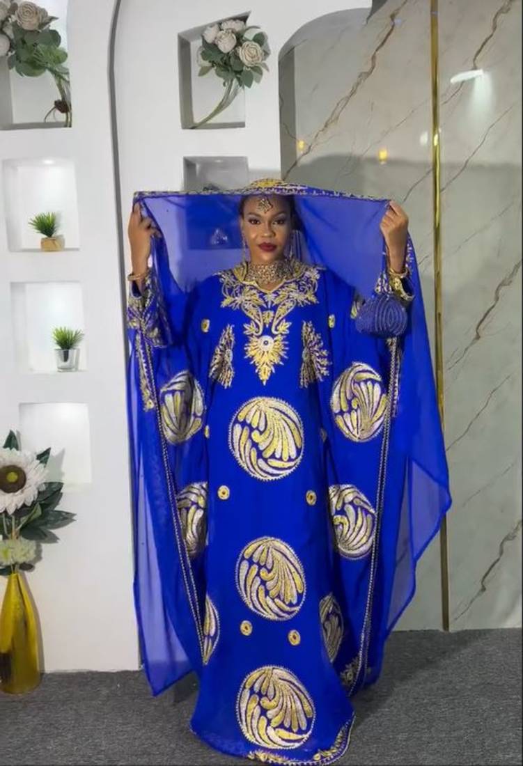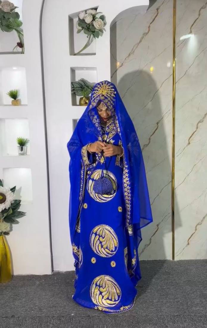 | Product Description | New Blue Aari Embroidered Abaya With Gold Detailed Work For Women's |