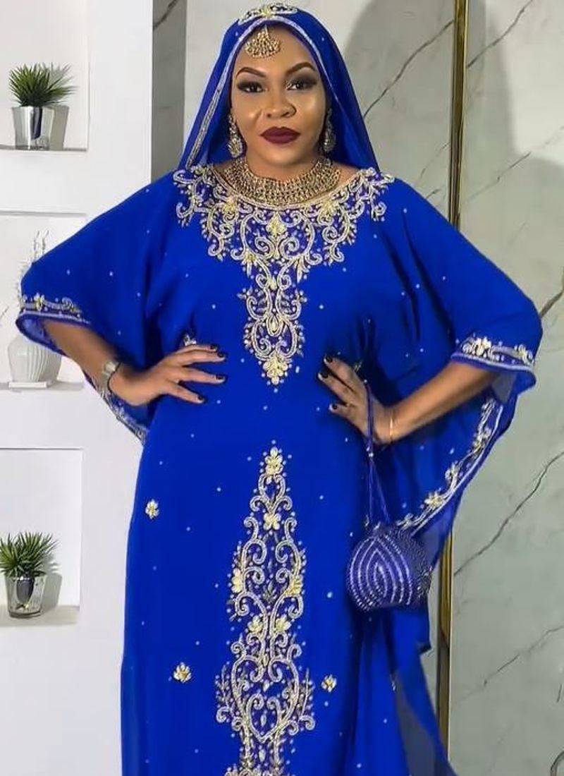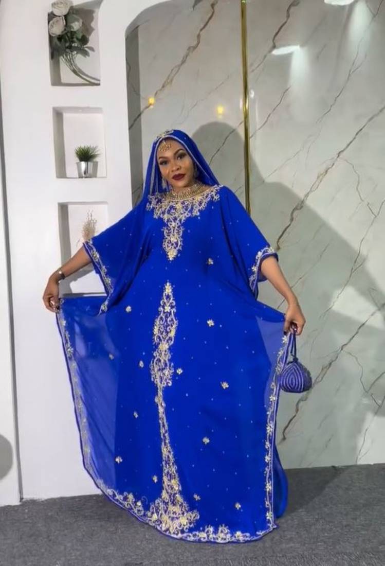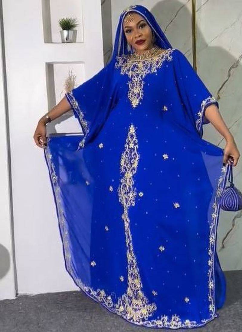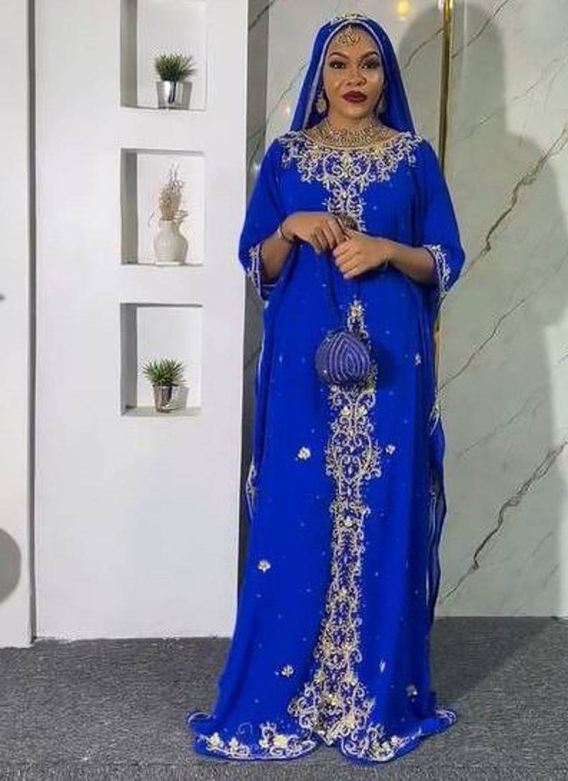 | Product Description | New Blue Aari Embroidered Abaya With Gold Detailed Work For Women's |