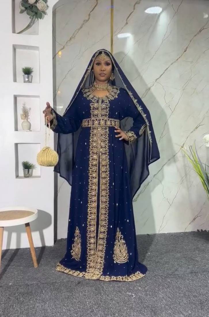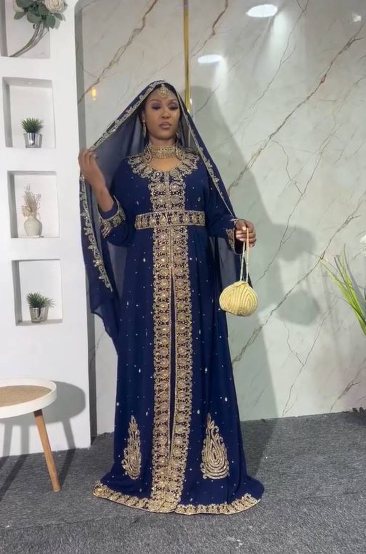 | Product Description | New Navy Blue Zari Embroidered Abaya With Gold Detailed Work For Women's |