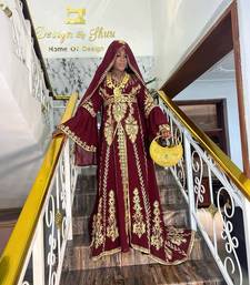 | Product Name | New Wine Aari Embroidered Abaya With Gold Detailed Work For Women's | |