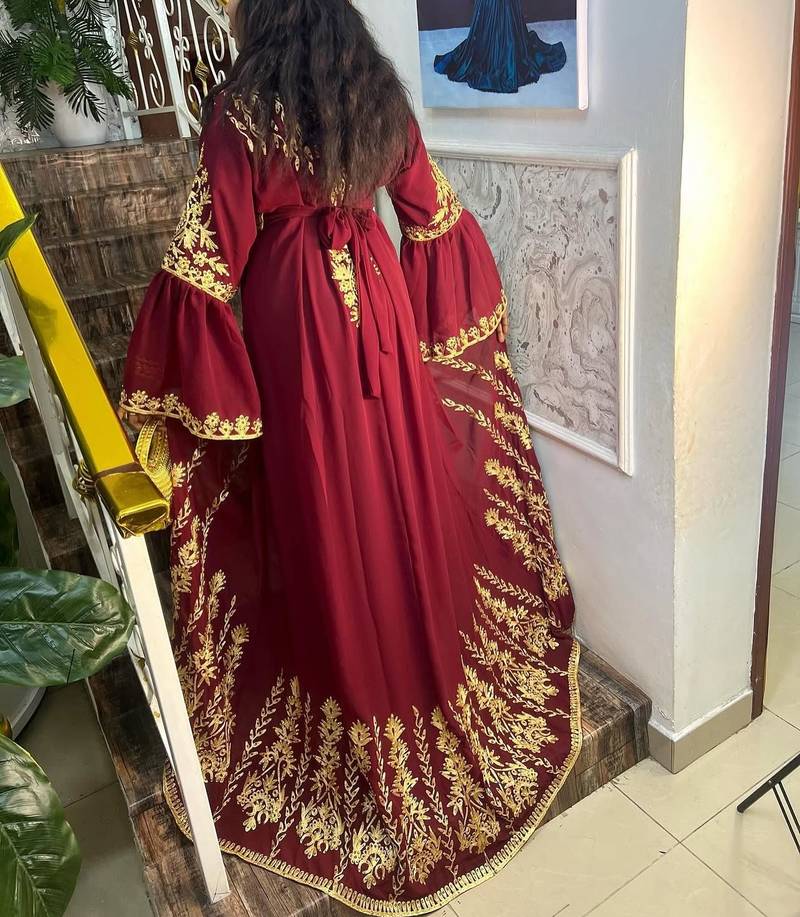 | Product Description | New Wine Aari Embroidered Abaya With Gold Detailed Work For Women's |