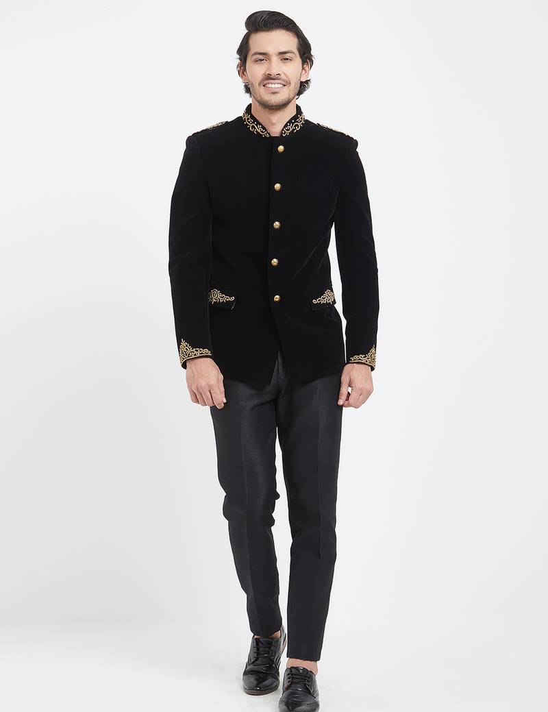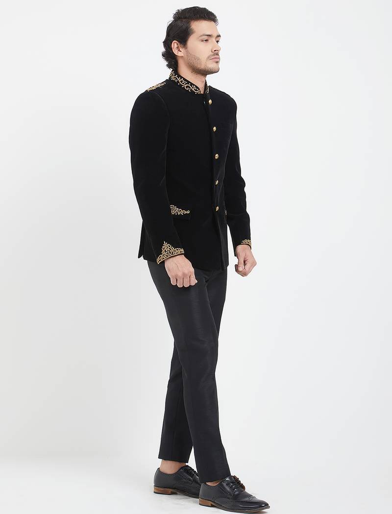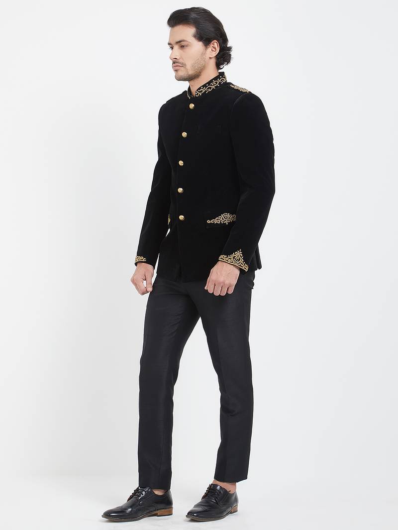 Black velvet straight handwork jodhpuri for men's