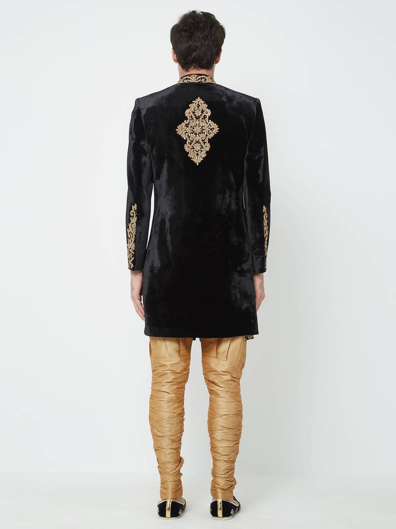 Black velvet straight handwork sherwani for men's
