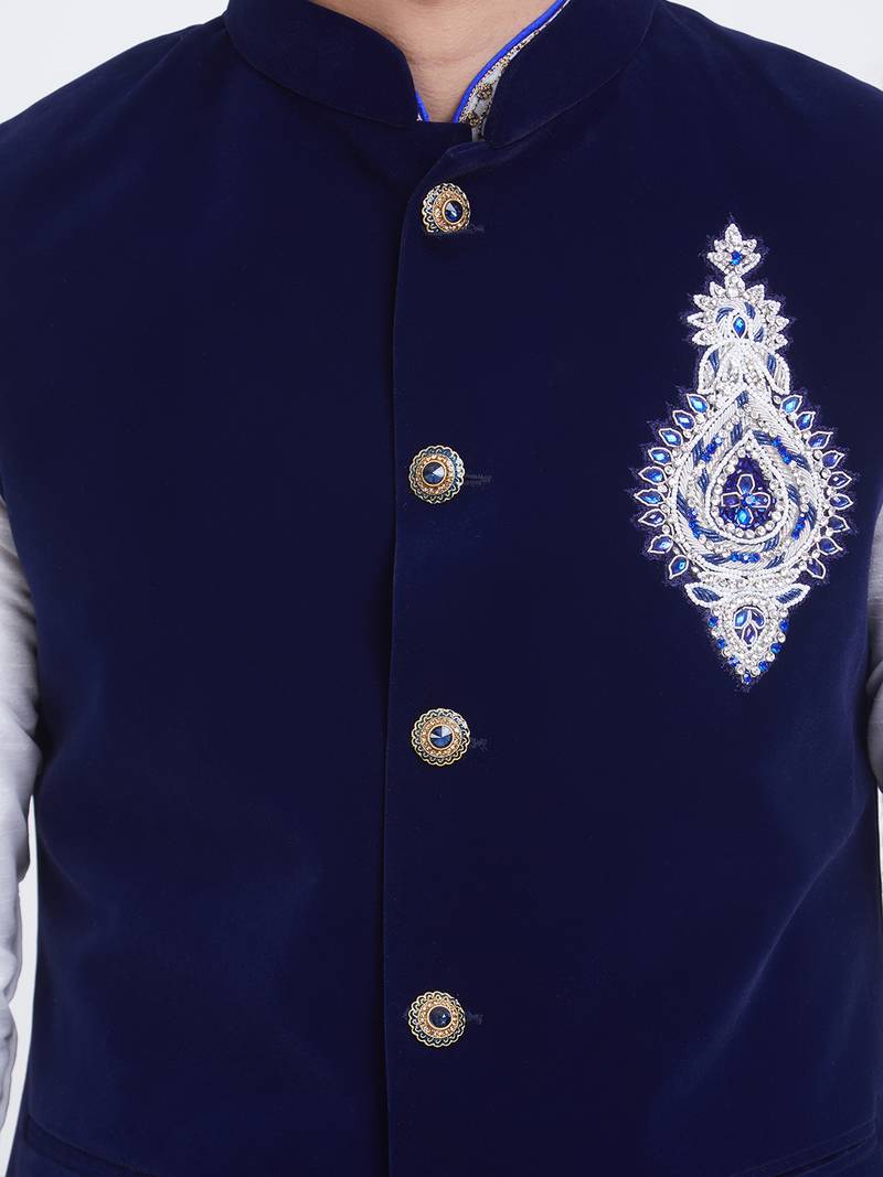 Dark blue velvet straight handwork nehru jacket & kurta for men's