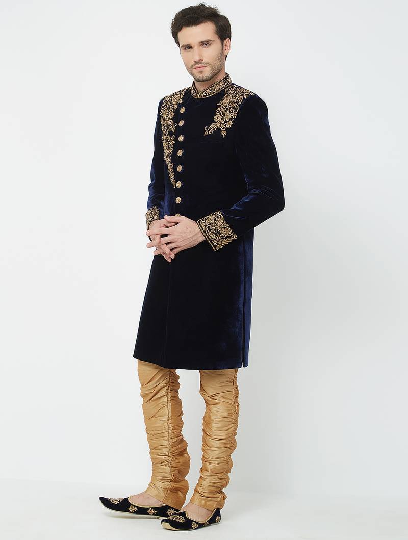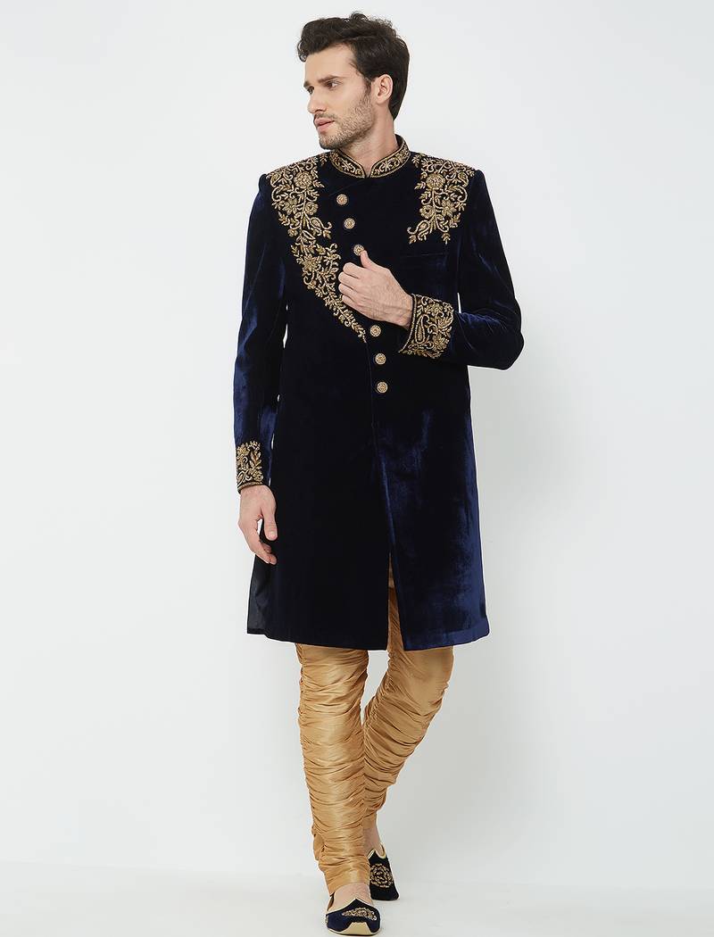 | Product Name | Navy Blue Velvet Straight Embroidery With Handwork Sherwani For Men's | |
