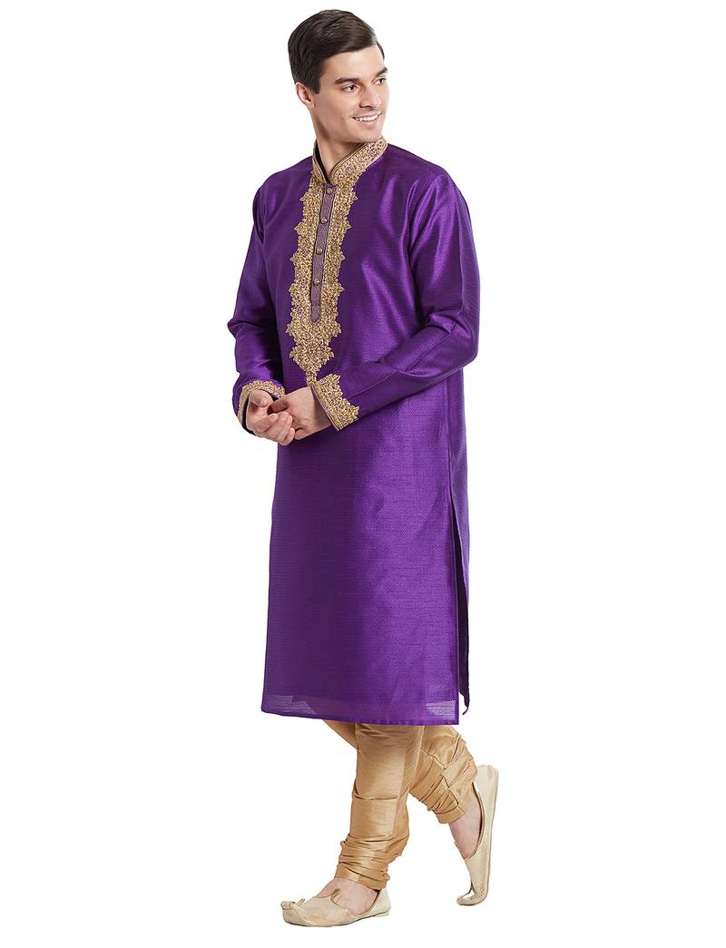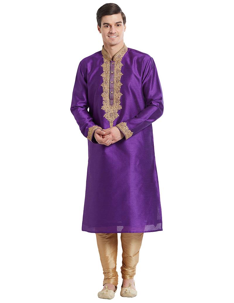 | Product Name | True Purple Art Silk Straight Embroidery Kurta For Men's | |