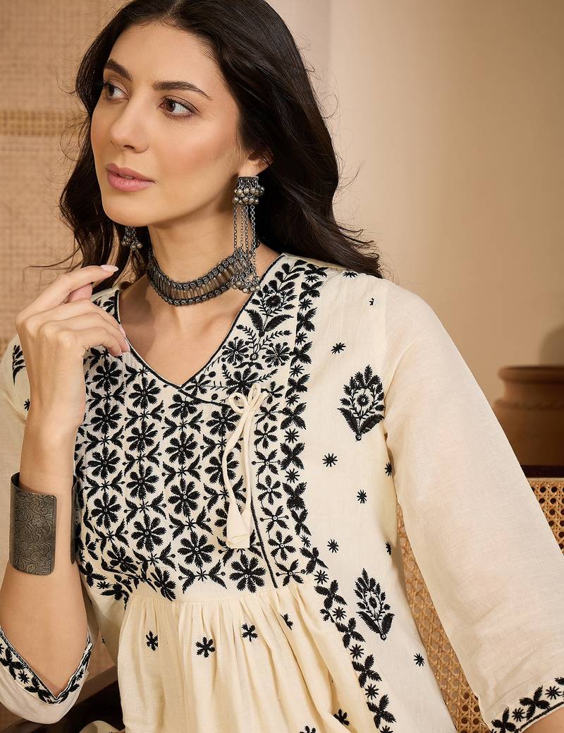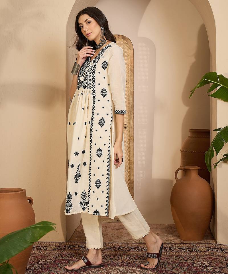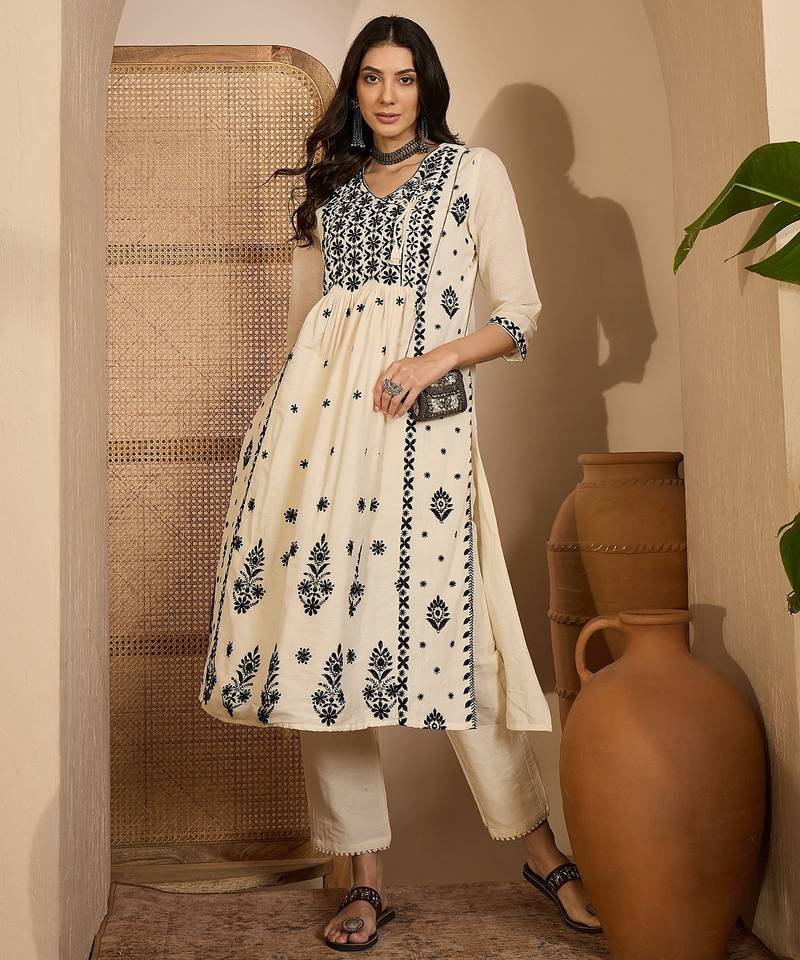 | Product Name | Beige Khadi Silk Embroidered Embroidery Work Top Bottom Set | |