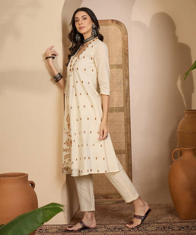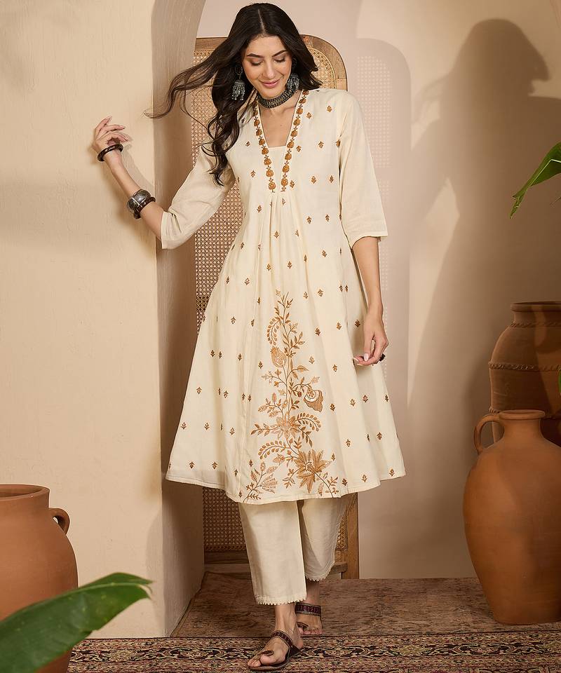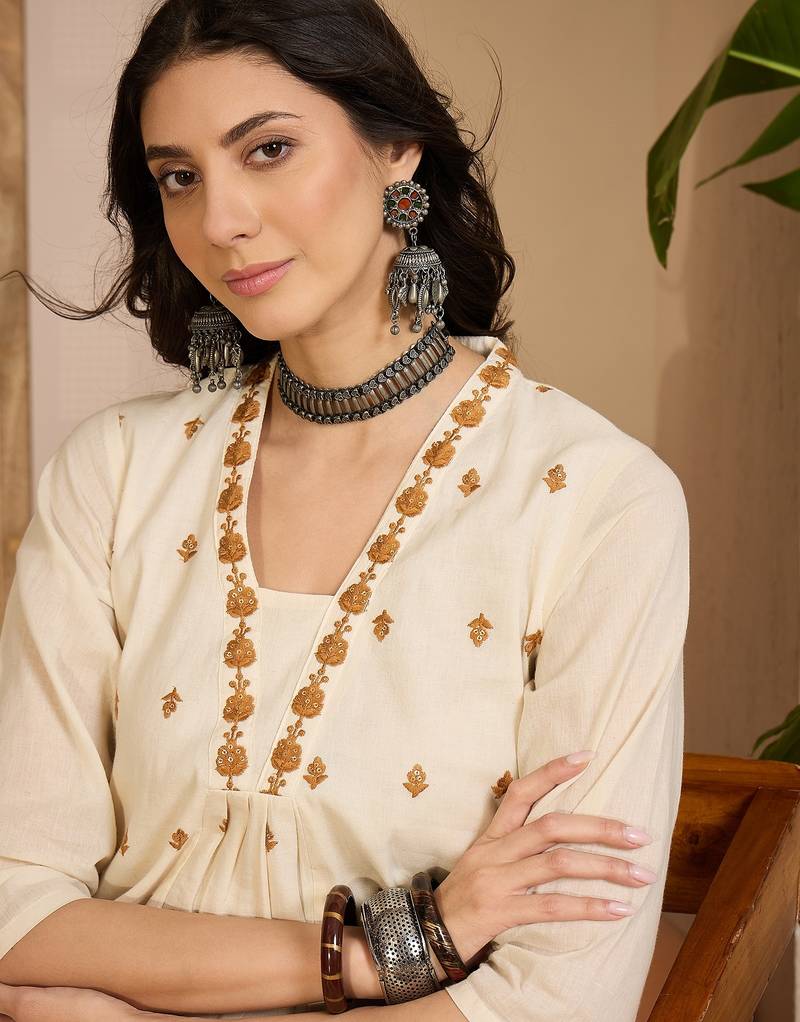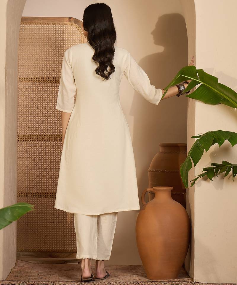 | Product Name | Beige Khadi Silk Embroidered Embroidery Work Top Bottom Set | |