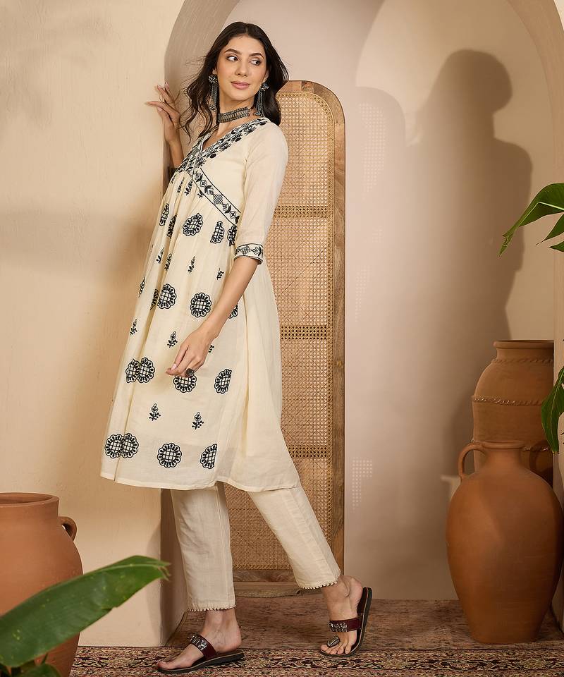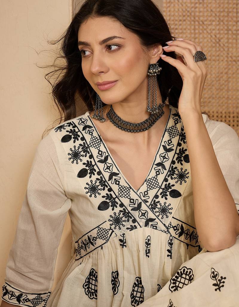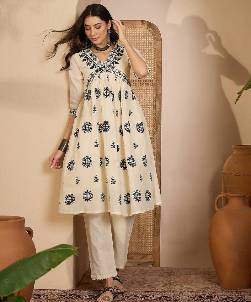 | Product Name | Beige Khadi Silk Embroidered Embroidery Work Top Bottom Set | |