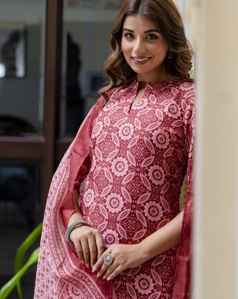 | • | Dupatta | : | Color- Red / Fabric- Blended Cotton |