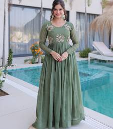 Green color beautiful ceremonial gown for ethnic stylish looks