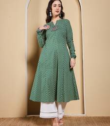 Green color cotton fabric designer printed stylish long kurti