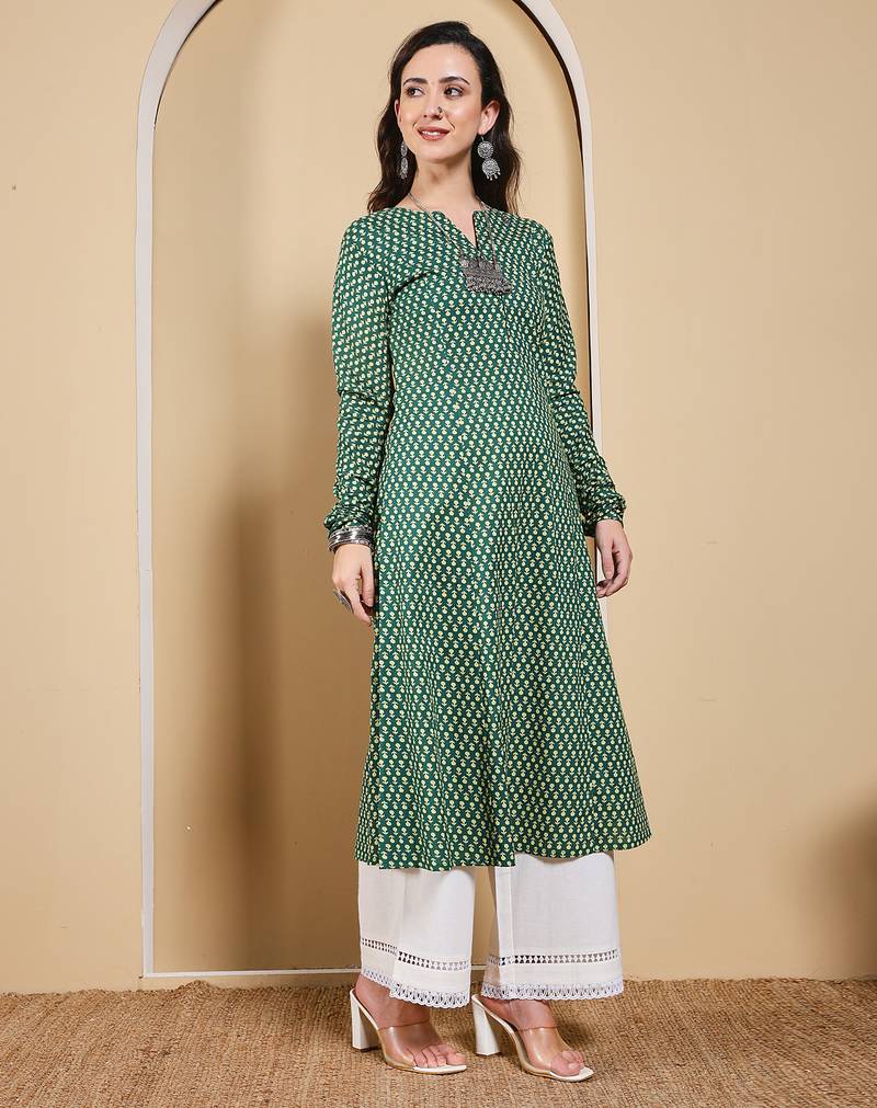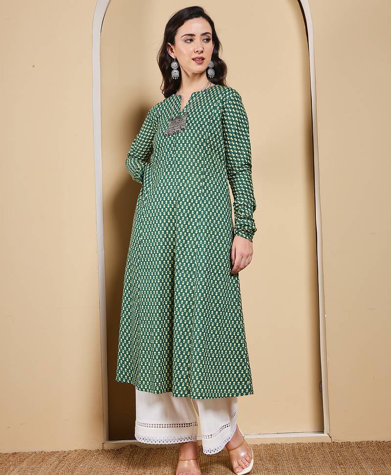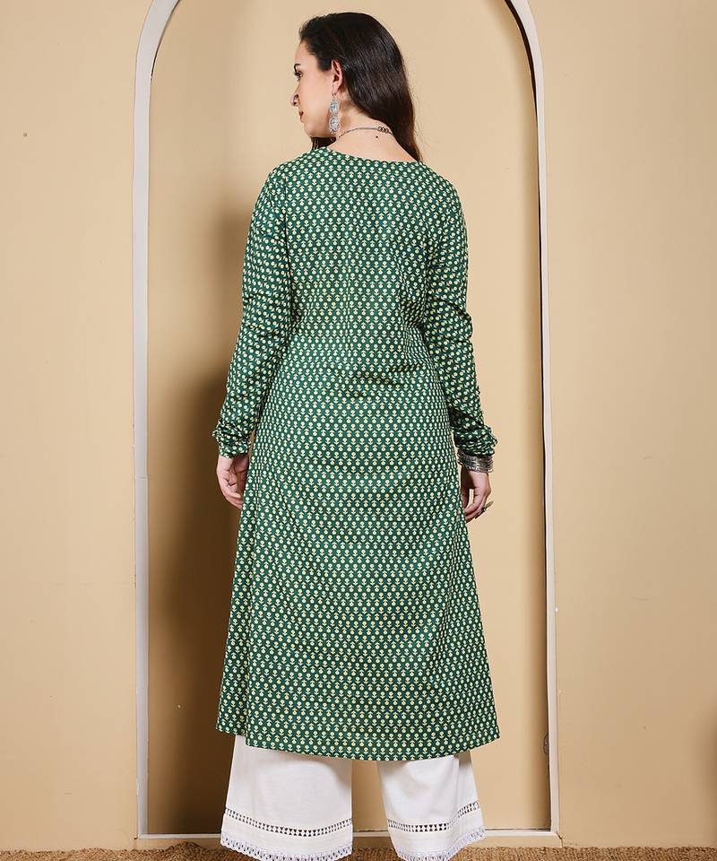 | Product Name | Green Color Cotton Fabric Designer Printed Stylish Long Kurti | |