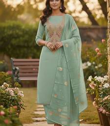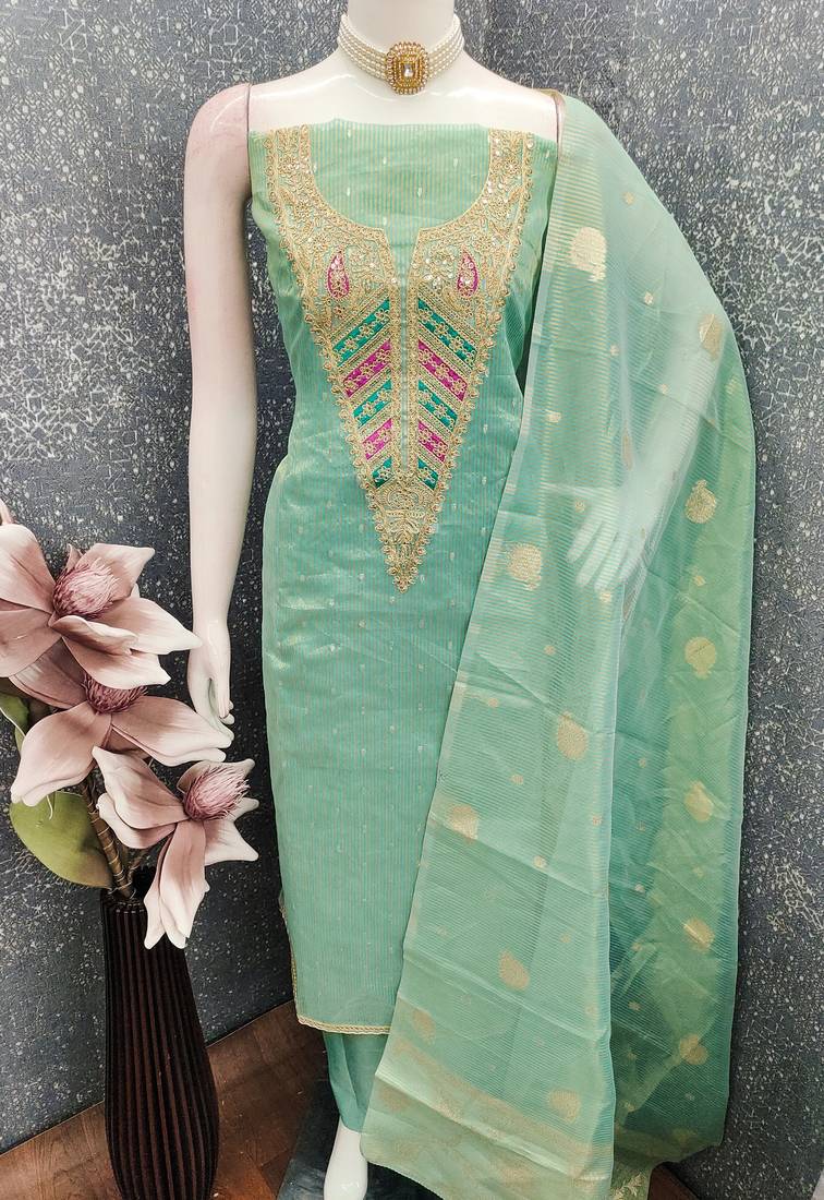 Green simmer embroidered partywear readymade suit unstitched