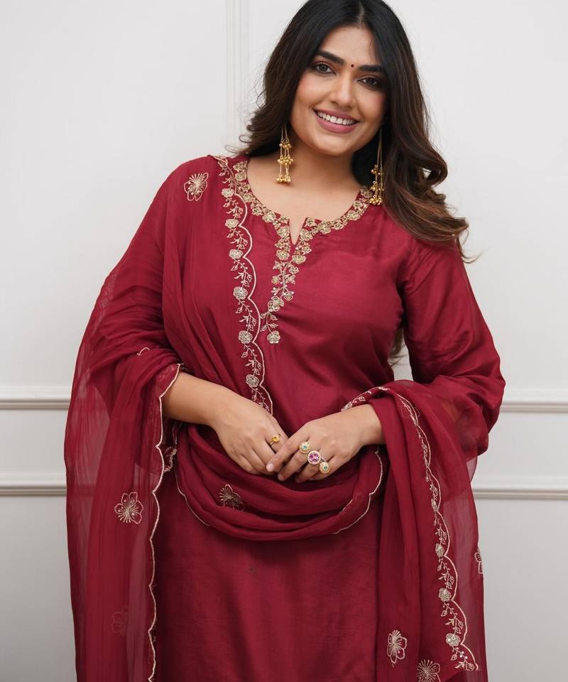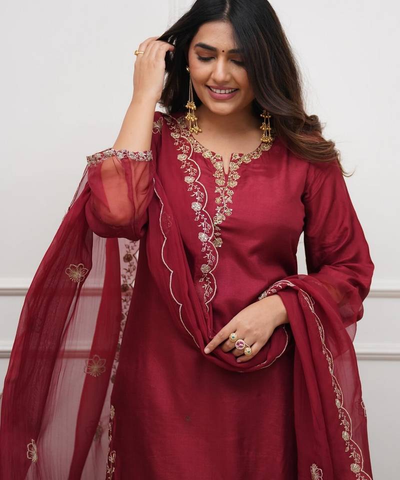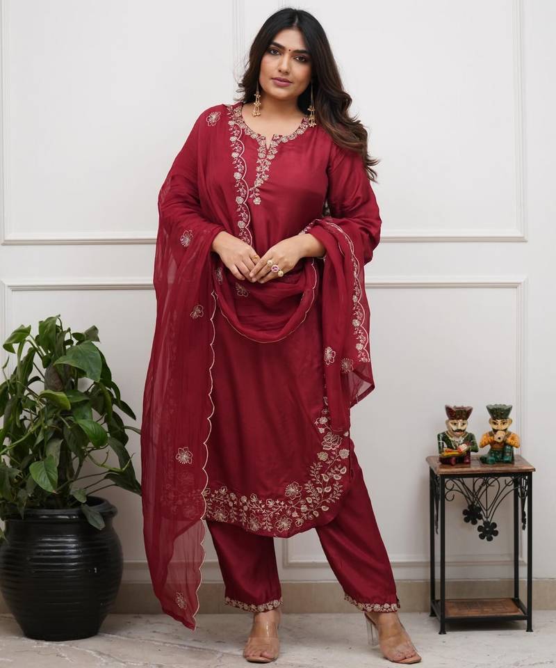 | Product Name | Maroon Color Chanderi Fabric Designer Stylish Fancy Kurta Set For Girls | |