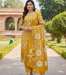 Mustard gajji silk ethnic readymade suit unstitched