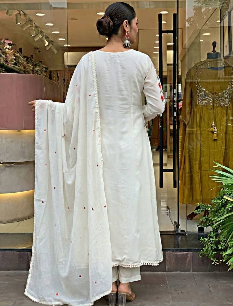 | Product Name | Off White Chanderi Silk Embroidered Embroiderd Stitched Suit | |