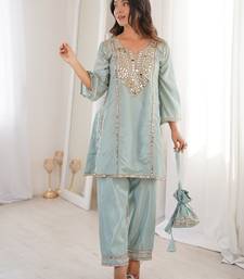 | • | Bottom | : | Color- Sky Blue / Fabric- Silk Blend |