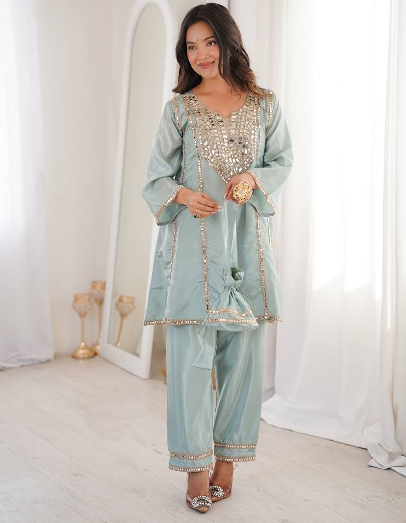 | Product Description | Attactive These Beautiful Looking Readymade Top With Dupatta.These Top Are Ho Silk And Bottom Are H O Silk Fabricated.Its Beautified With Designer Real Mirror Embroidery Work. |