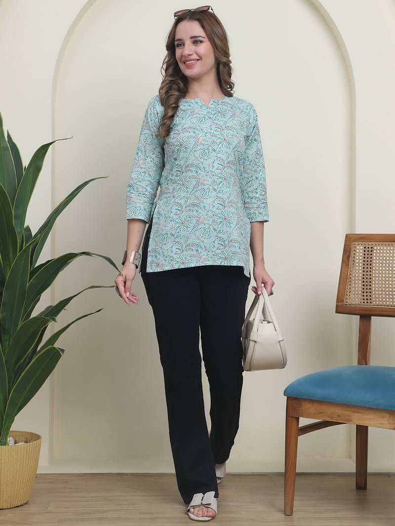 | Product Name | Teal Cambric Cotton Printed Formal Short Kurta | |