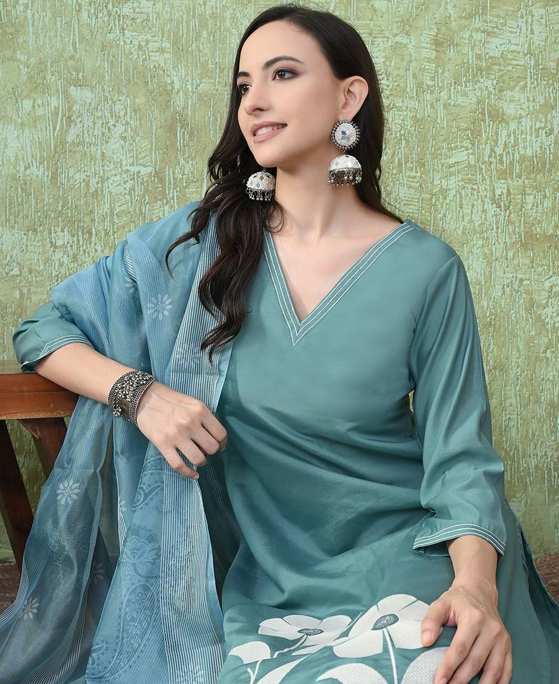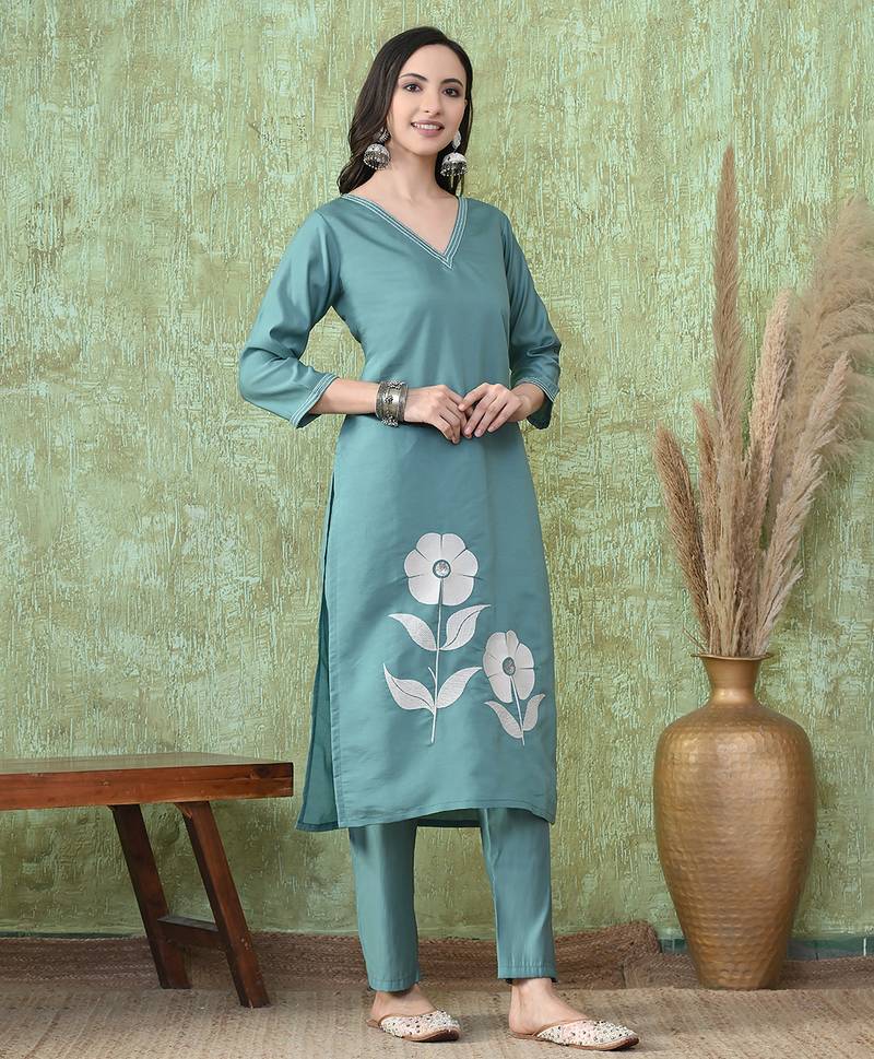 | Product Name | Teal Roman Silk Kurta Pant Set | |