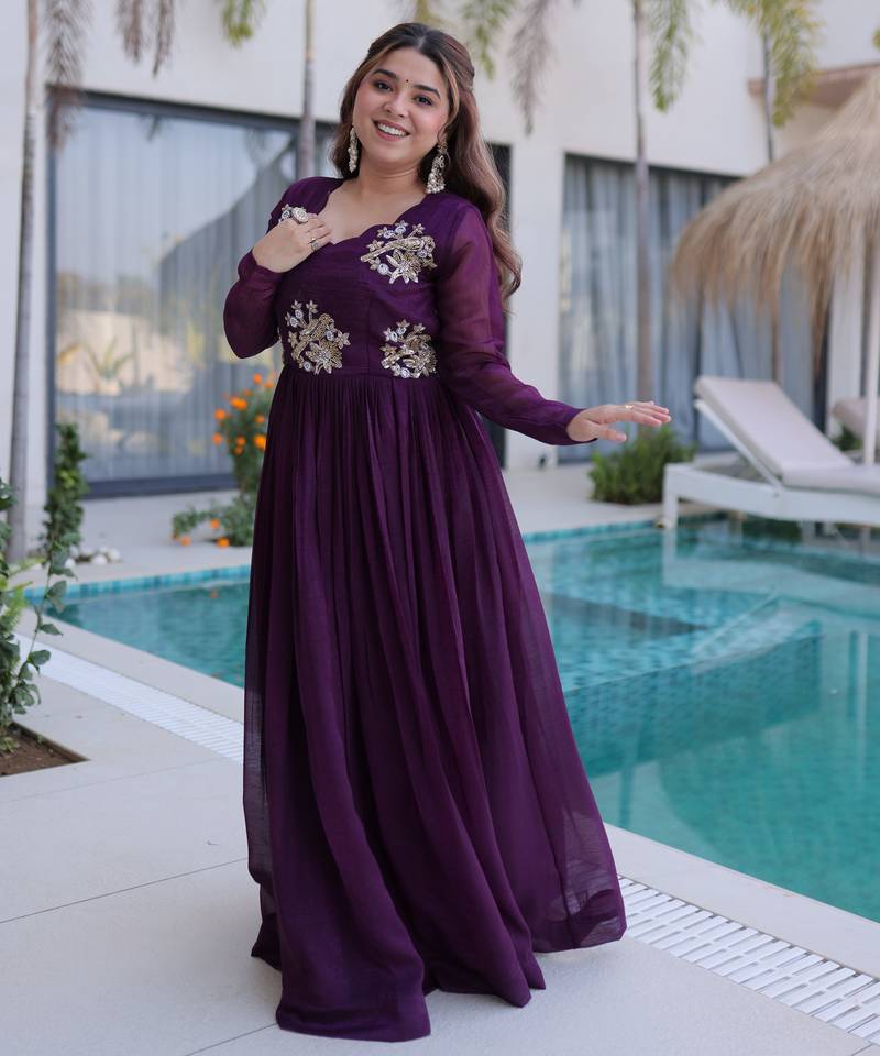 | Product Name | Wine Color Beautiful Ceremonial Gown For Ethnic Stylish Looks | |