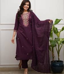 Wine rayon slub embroidered festive wear salwar kameez