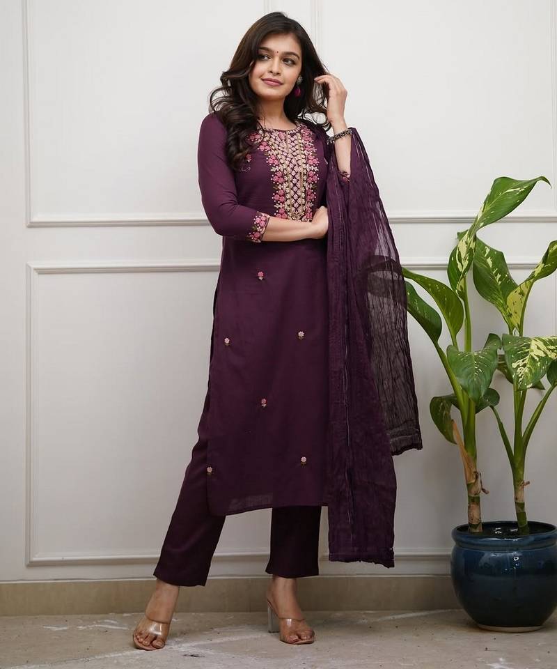 | Product Name | Wine Rayon Slub Embroidered Festive Wear Salwar Kameez | |