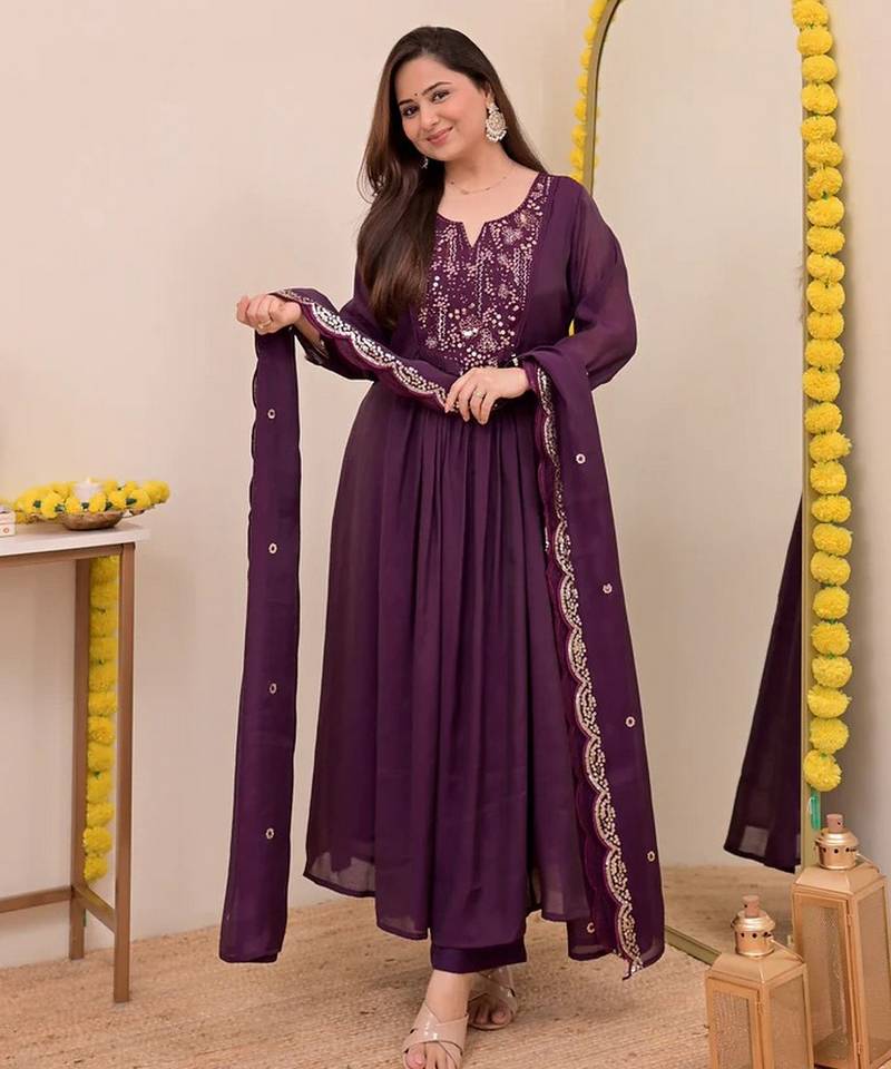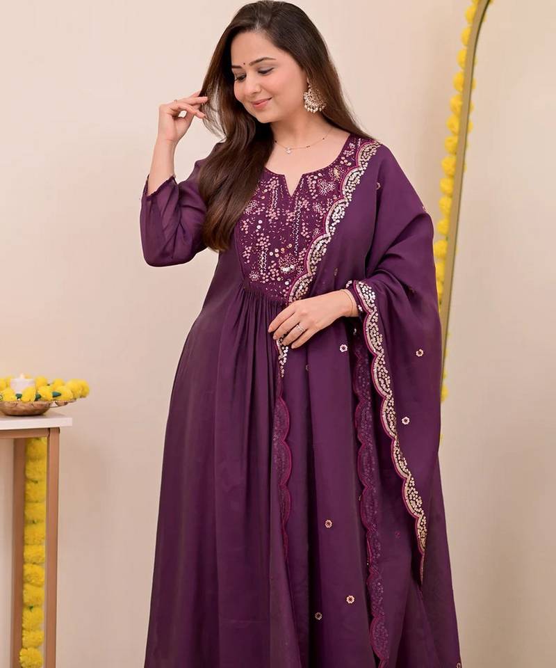 | Product Name | Wine Chanderi Silk Embroidered Embroiderd Stitched Suit | |