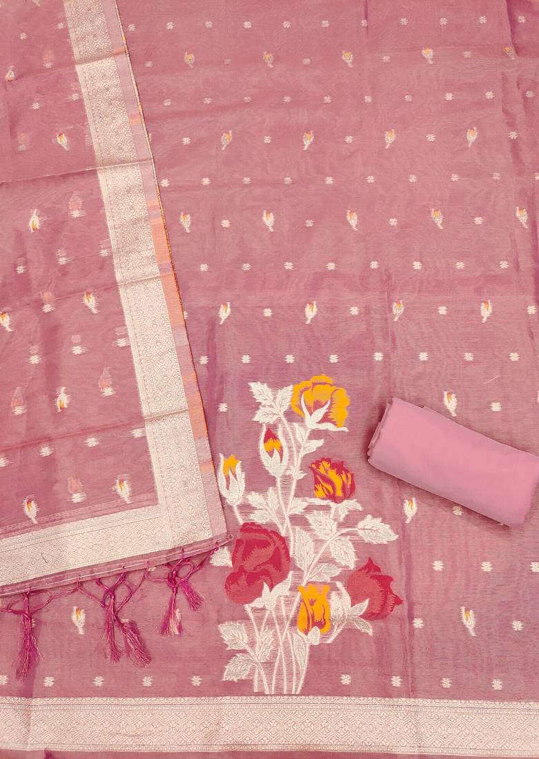 | Product Name | Pink Zari Weaving Dress Material For Women | |