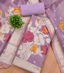 Purple shimmer dress material with zari weaving unstitched