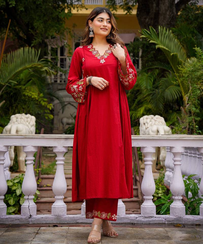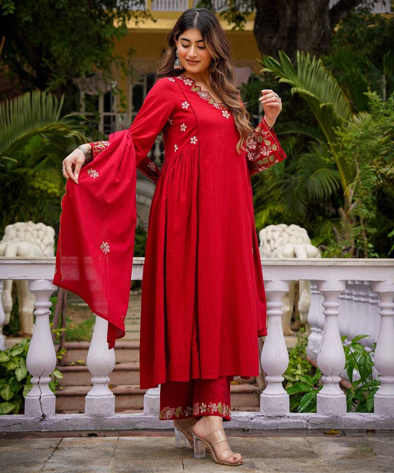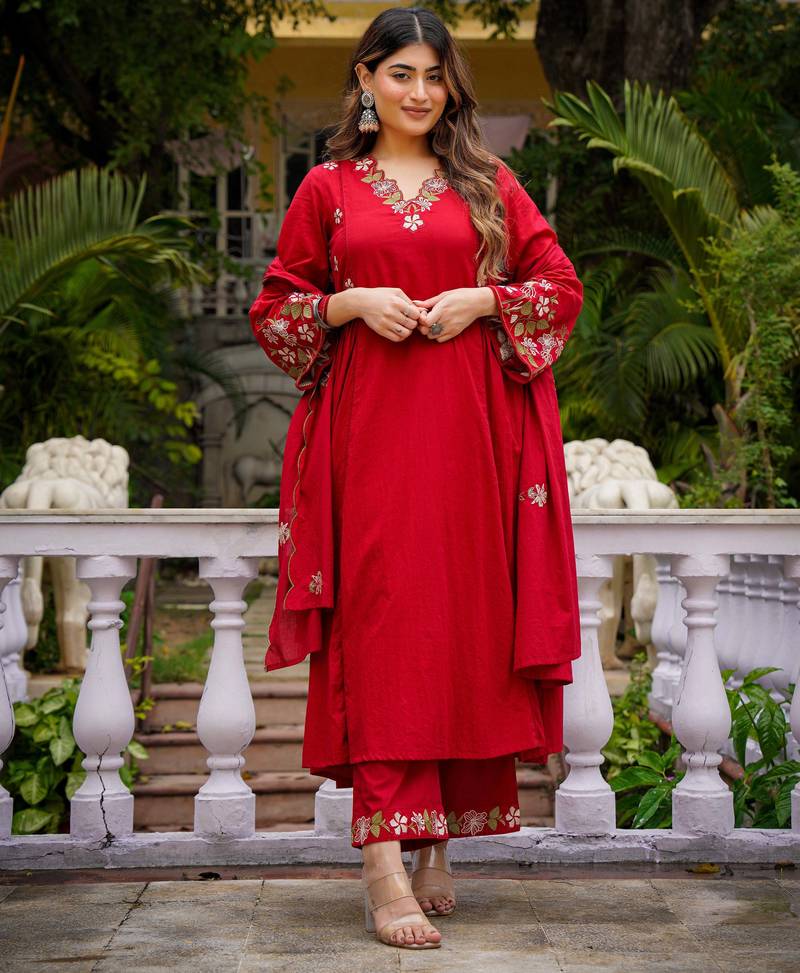This Salwar Suit Set With Dupatta Is Elevated By A Stunning Red Organza Kurta Set Style Dupatta, Featuring Intricate Embroidery That Adds A Layer Of Ethereal Grace. Whether You Are Dressing Up For A Festive Diwali Kurti Look, An Eid Kurti Celebration, Or A Wedding Event, This Silk Kurta Set For Women Ensures You Remain The Center Of Attention. Far More Sophisticated Than Basic Cotton Kurtis, This Ensemble Functions As A Complete Women's Indian Salwar Kameez Set, Blending The Tradition Of Ethnic Kurtis With The Modern Appeal Of A Kurta Pant Set For Women. Experience The Perfect Fusion Of Style And Heritage With This Premium Party Wear Kurta Set