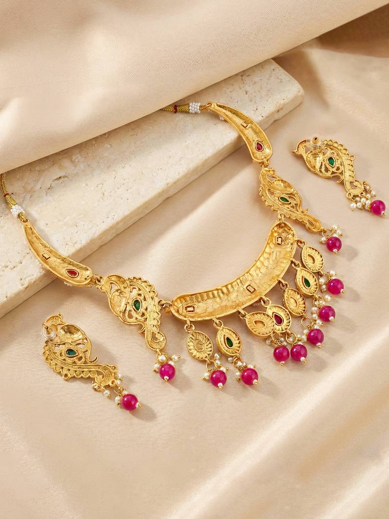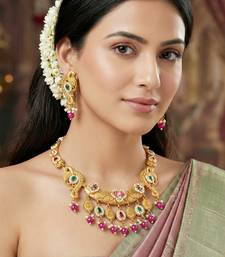 | Product Name | Antique Gold Tone Peacock Temple Necklace Set With Earrings For Wedding Wear | |