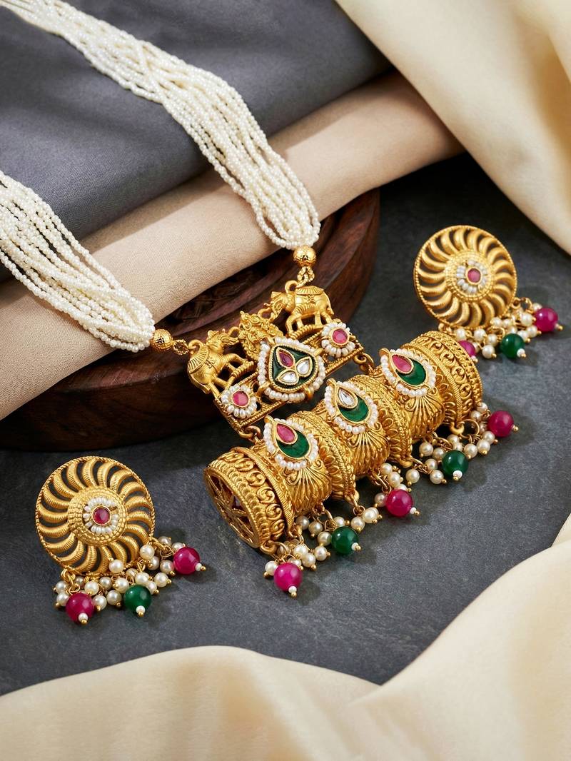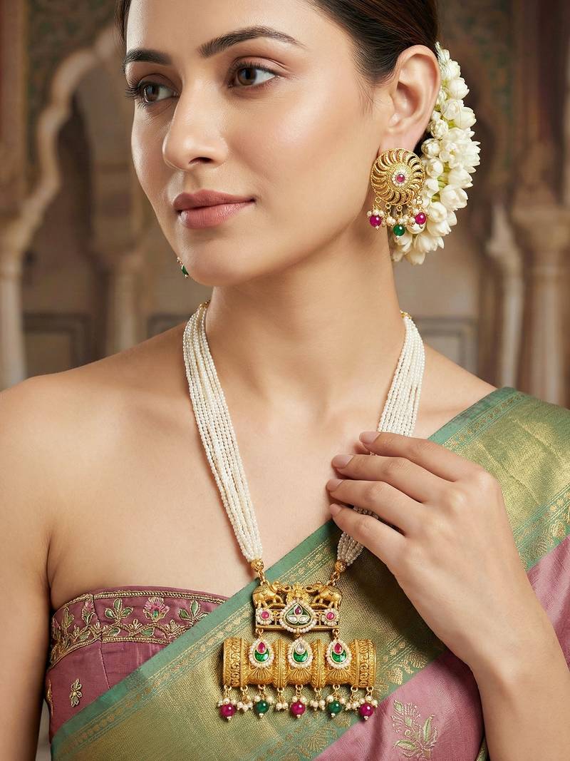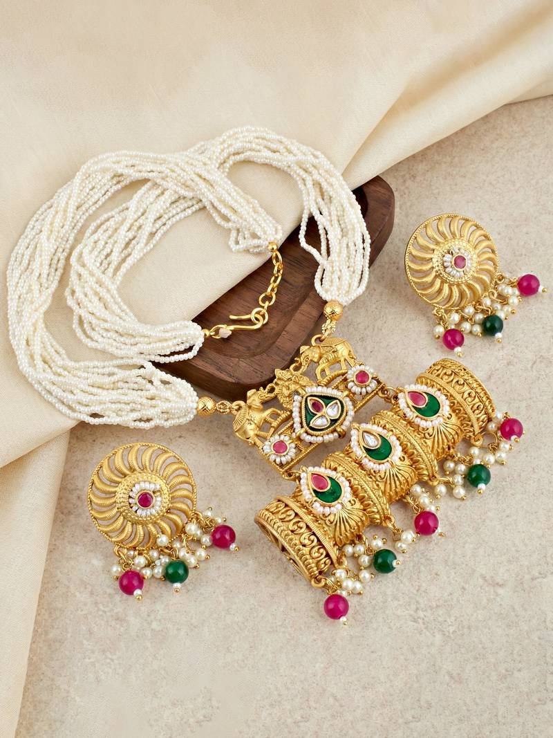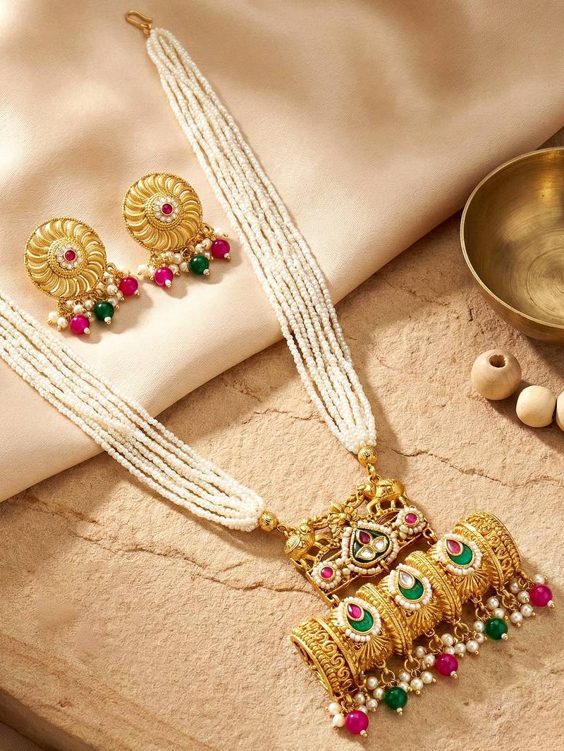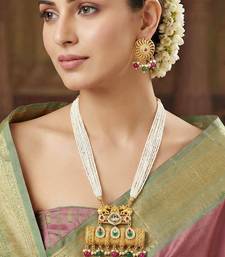 | Product Name | Gold Tone Temple Pearl Necklace Set With Earrings For Party & Wedding Wear | |