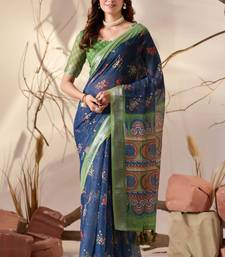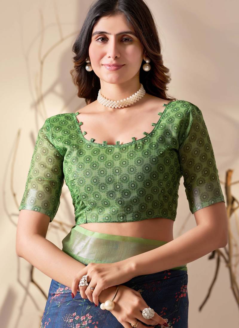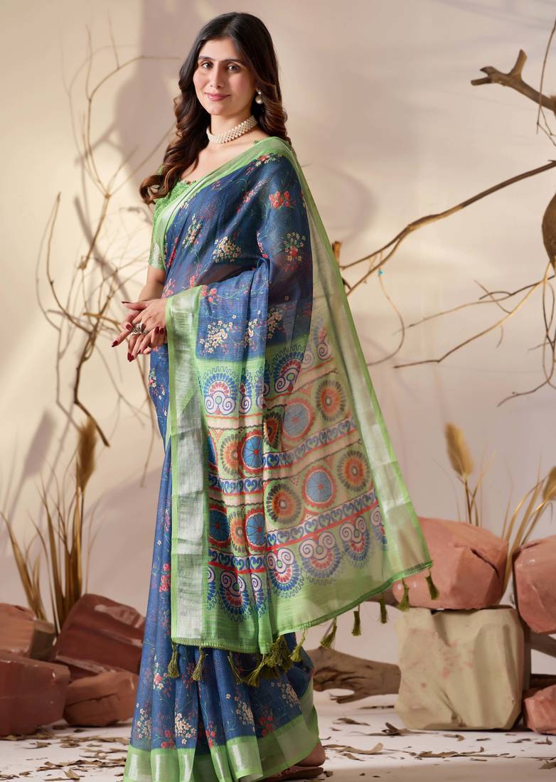 | Product Name | Navy Blue Linen Cotton Saree With Floral Digital Print & Patola Inspired Pallu | |