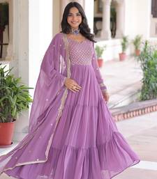 Purple faux georgette sequins zari embroidered kurti with dupatta