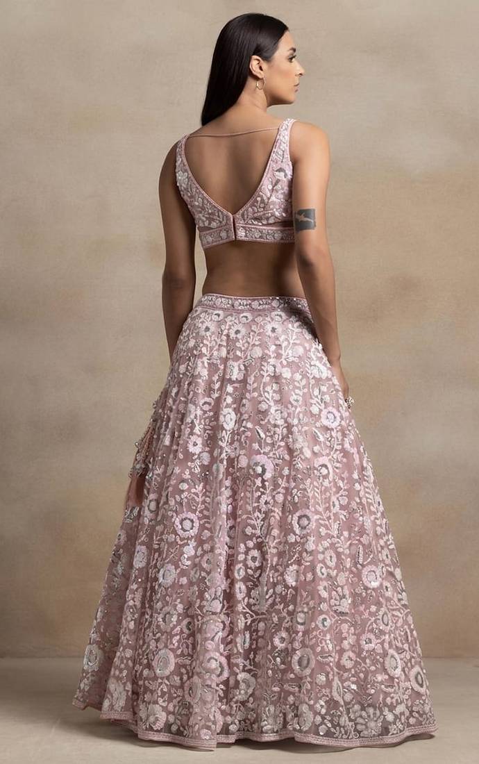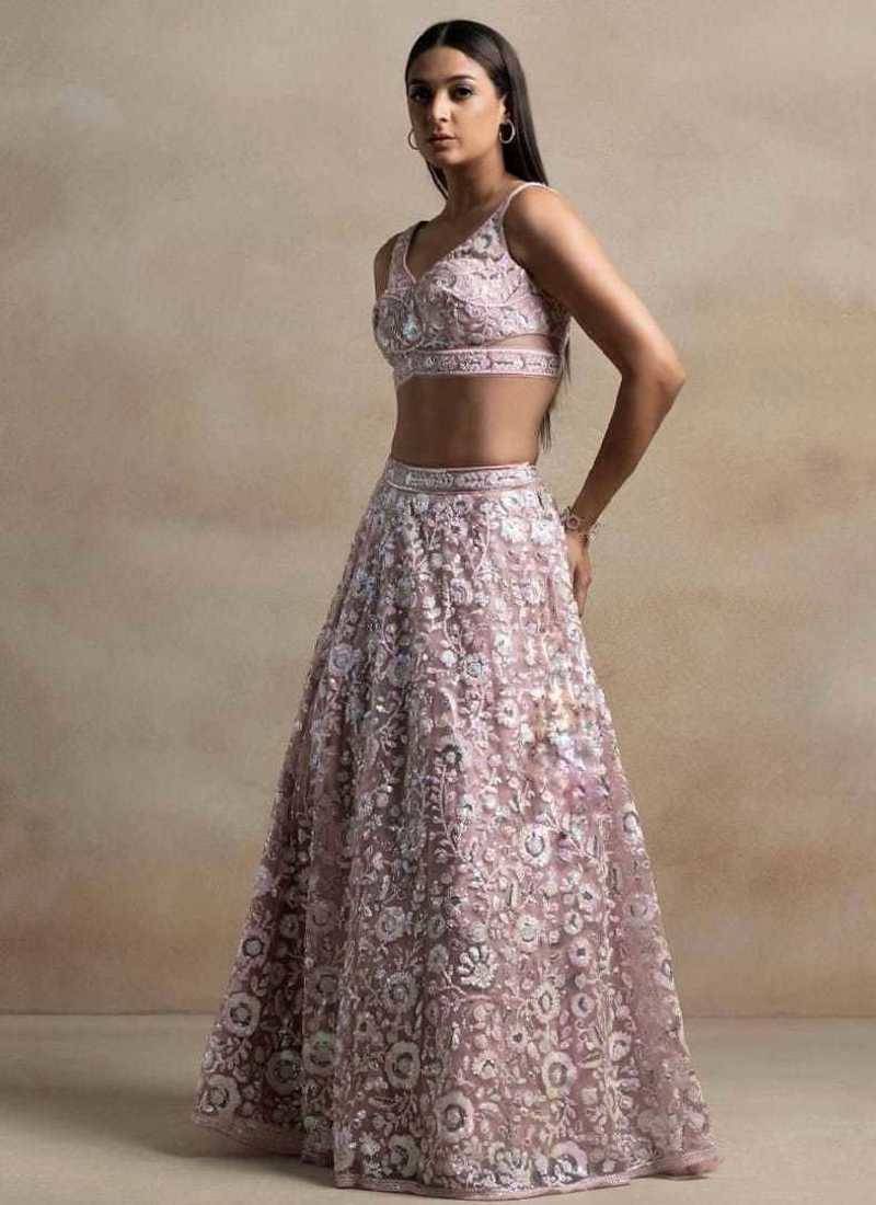 | Product Name | Pink Sequins Embroidered Soft Net Fabric Indian Designer Wedding Lehenga | |