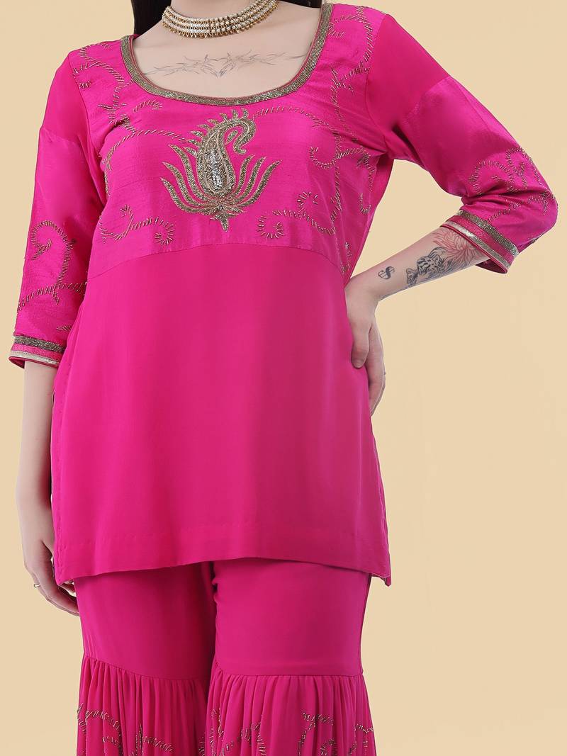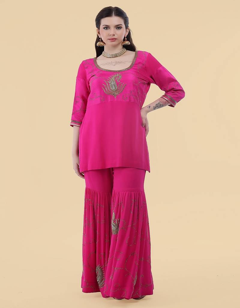 | Product Name | Pink Georgette Cape Sharara Set | |