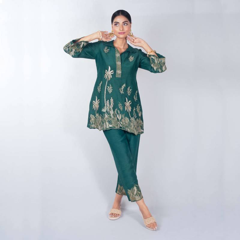 | Product Name | Green Embroidered Linen Kurta Set | |