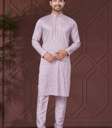 Lavender pure silk with embroidery work kurta pyjama for mens wear