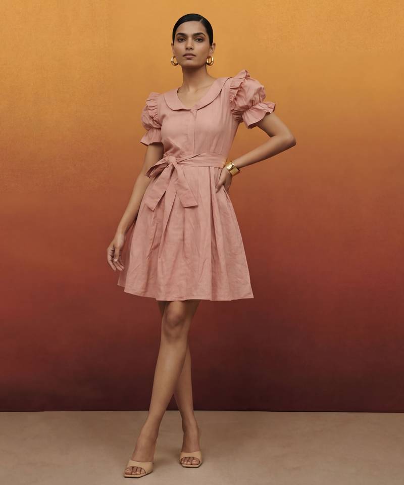 | Product Description | Soft Pink Vintage Inspired Pure Cotton Mini Summer Dress Featuring Ruffled Sleeves And Matching Shorts. Comfortable, Breathable, And Handcrafted |