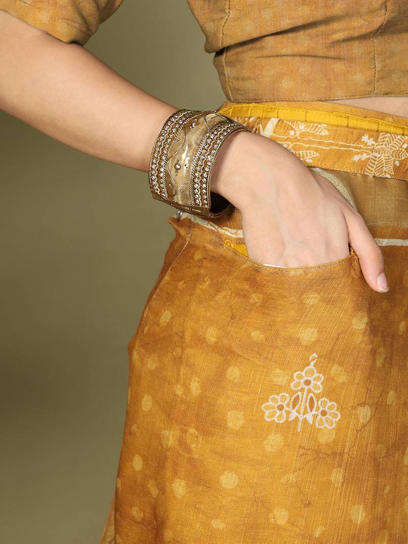 | Product Name | 1m Ready To Wear Golden Color Cotton Printed With Pocket Saree | |