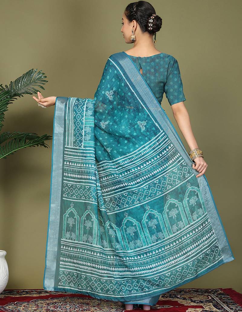 | Product Name | 1m Ready To Wear Sea Green Color Cotton Printed With Pocket Saree | |