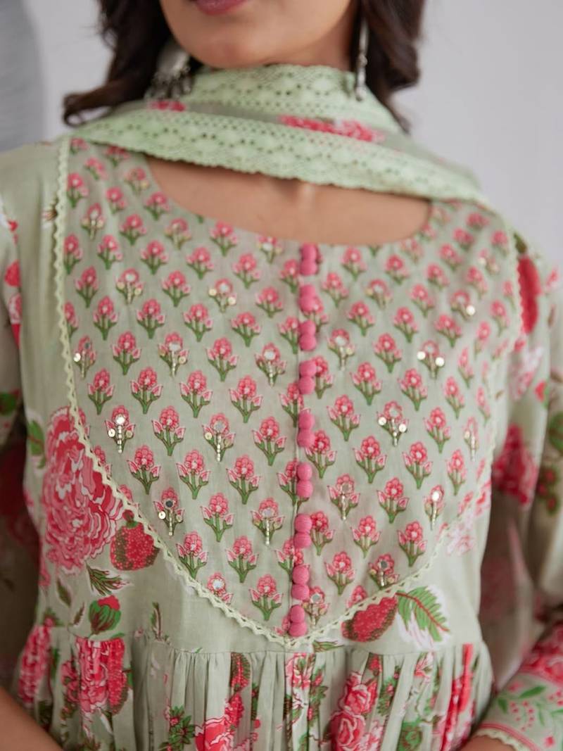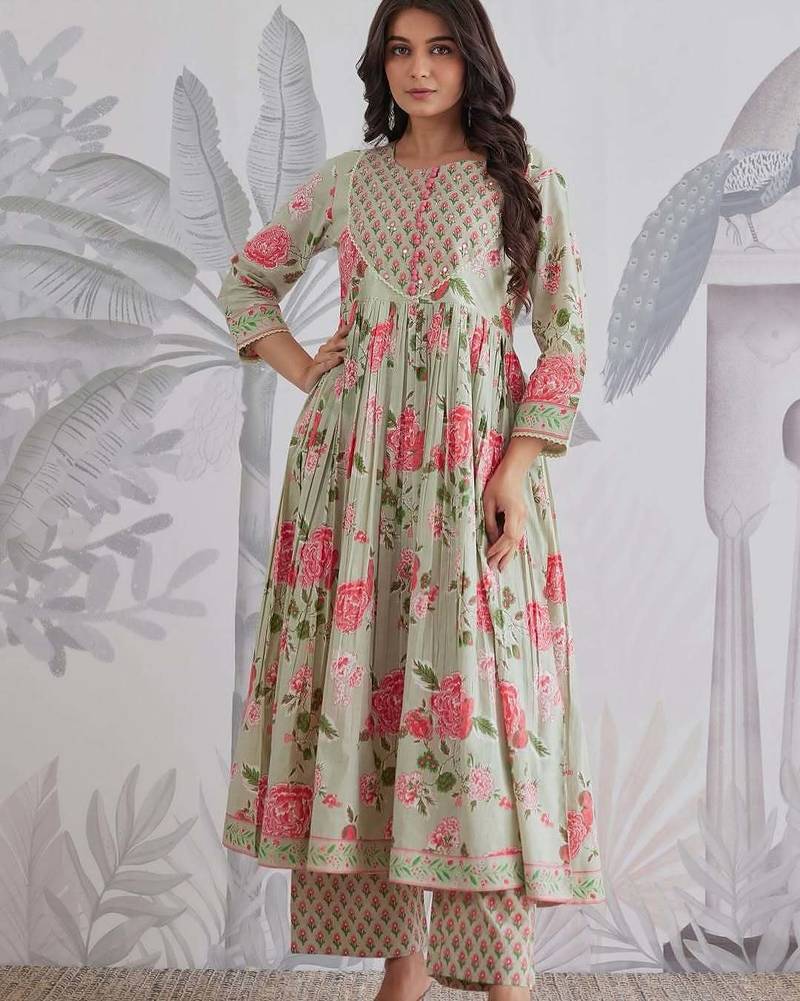 | Product Description | Anarkali Cotton Printed Hand Work Embroidered Kurta With Pant And Dupatta For Women And Girls |