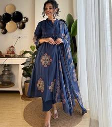 Anarkali cotton printed hand work embroidered kurta with pant and dupatta for women