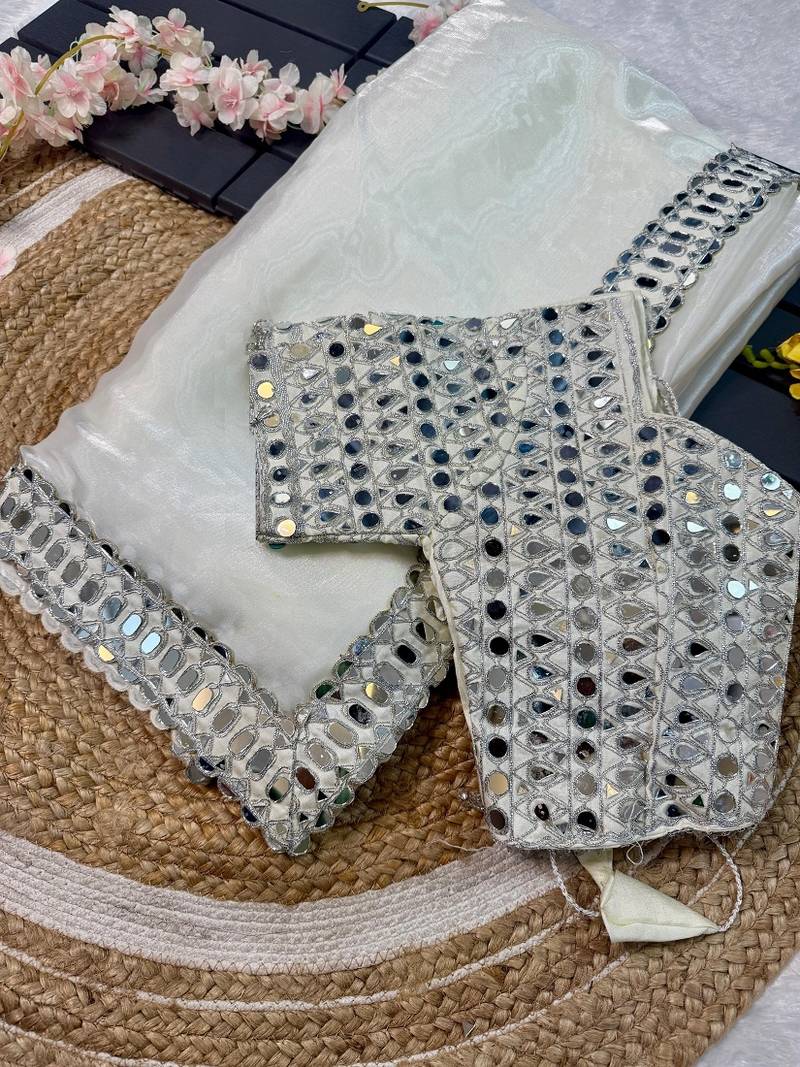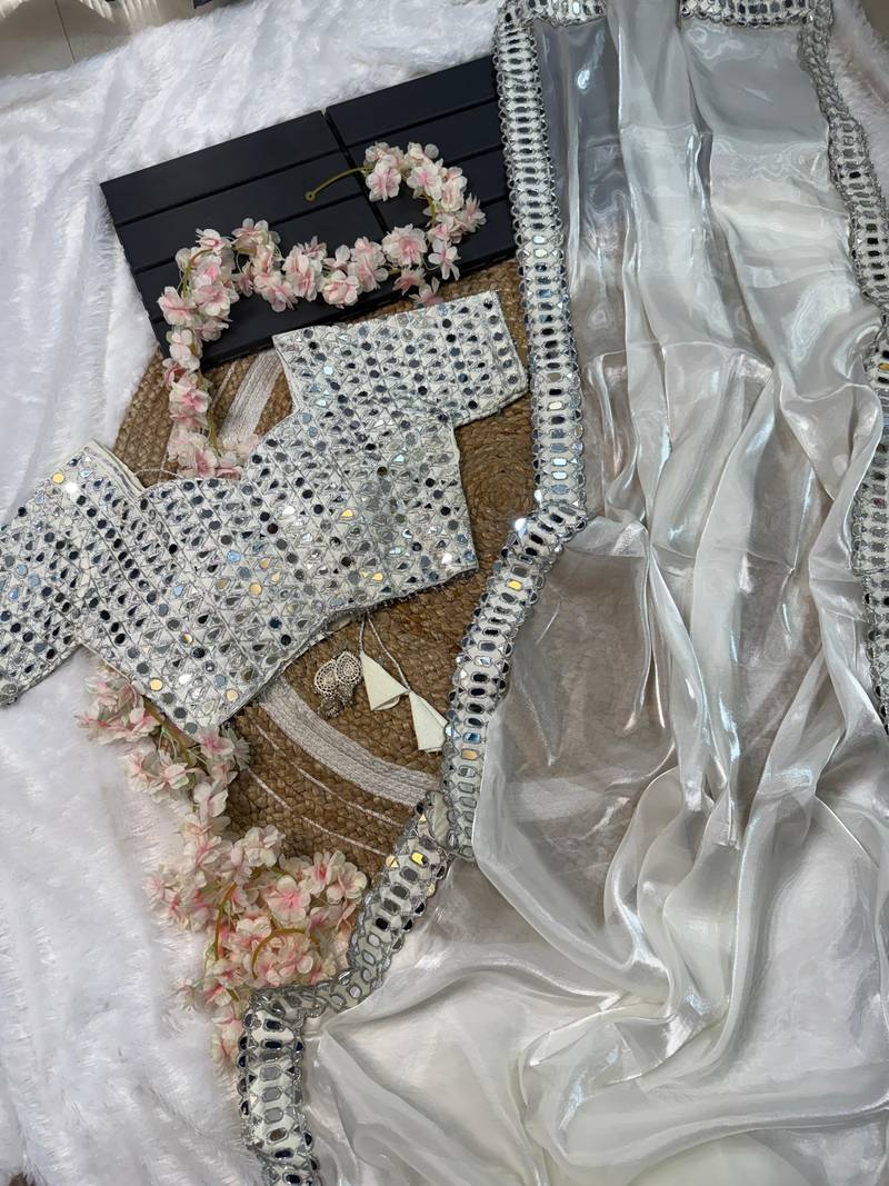 | Product Name | White Color Mirror Work Soft Satin Organza Silk Saree | |