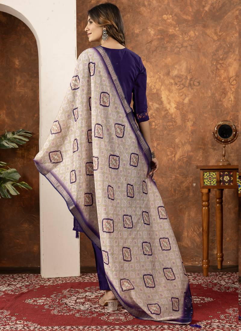 Purple marina silk thread embroidered salwar suit stitched