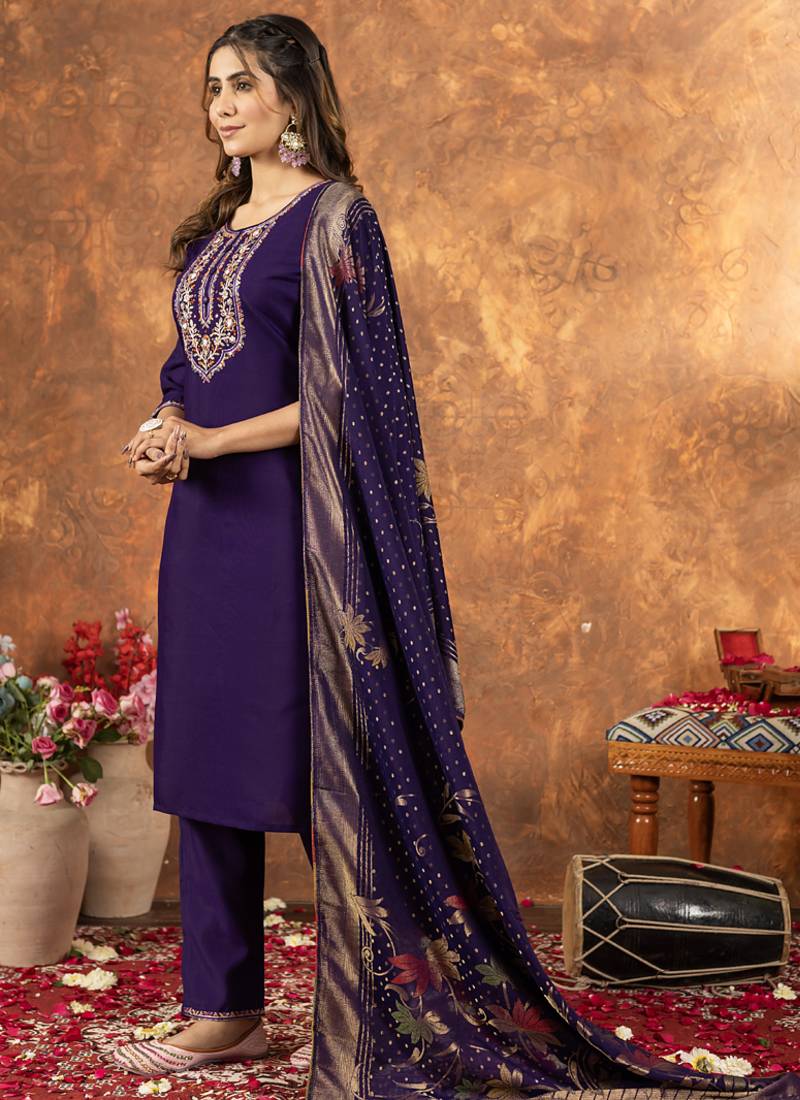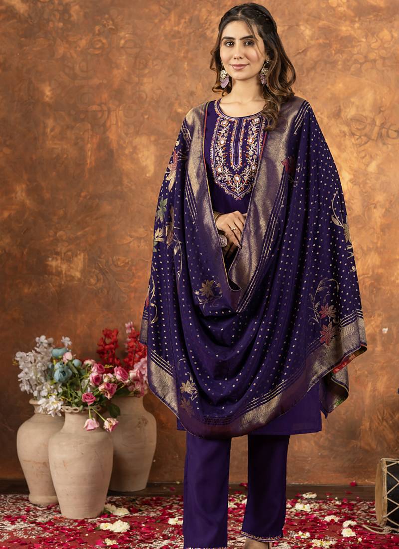 | Product Name | Purple Marina Silk Thread Embroidered Salwar Suit | |